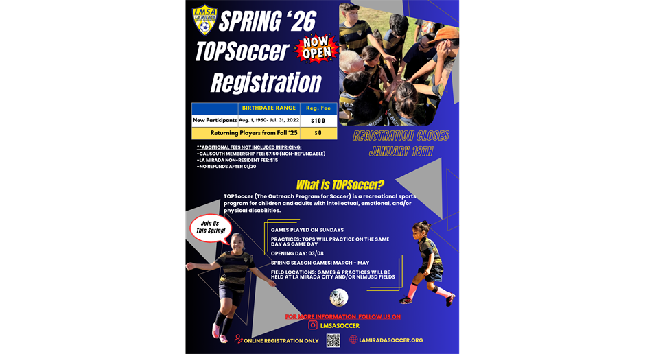 Online Registration Only @ lamiradasoccer.org.